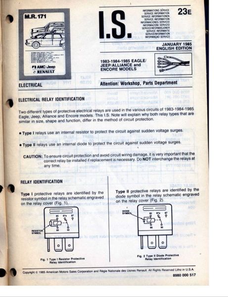 This is AMC IS note 23E which shows the difference between type 1 and type 2 electrical realys used in AMC cars up to 1985.